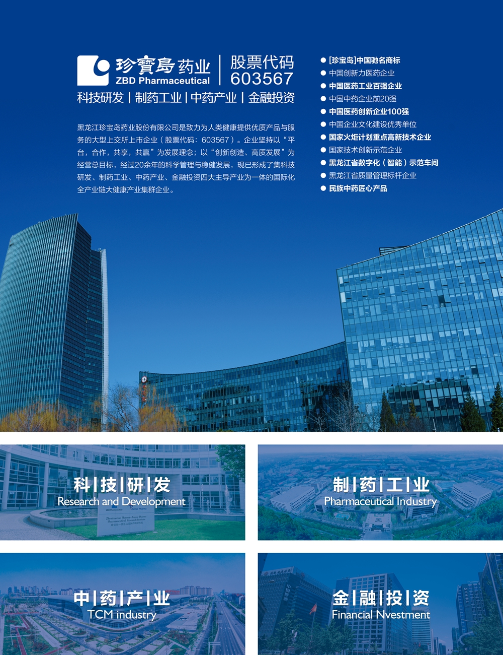 黑龍江珍寶島藥業(yè)股份有限公司(603567.SH)創(chuàng)立于1996年。公司以“為世界提供優(yōu)質(zhì)健康產(chǎn)品與服務(wù)”為企業(yè)使命,以“平臺(tái) 合作 共享 共贏”為發(fā)展理念,堅(jiān)持“一心三園四平臺(tái)”發(fā)展戰(zhàn)略,以“六位一體”運(yùn)營(yíng)模式推動(dòng)企業(yè)經(jīng)營(yíng)轉(zhuǎn)型。打造醫(yī)藥行業(yè)新質(zhì)生產(chǎn)力的重要平臺(tái),加快科技研發(fā)成果轉(zhuǎn)化與應(yīng)用,積極參與國(guó)家醫(yī)藥產(chǎn)業(yè)項(xiàng)目建設(shè)。珍寶島藥業(yè)長(zhǎng)期穩(wěn)居中國(guó)醫(yī)藥工業(yè)百?gòu)?qiáng)、中國(guó)中藥企業(yè)前二十強(qiáng)行列。業(yè)務(wù)領(lǐng)域涉及科技研發(fā)、制藥工業(yè)、中藥產(chǎn)業(yè)、金融投資四大板塊。