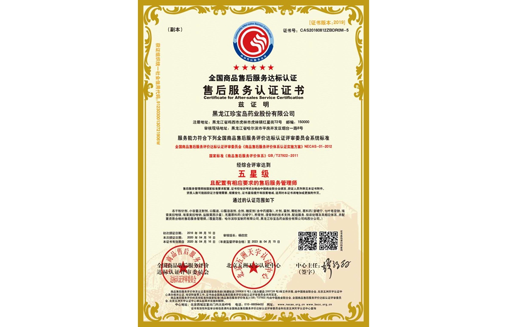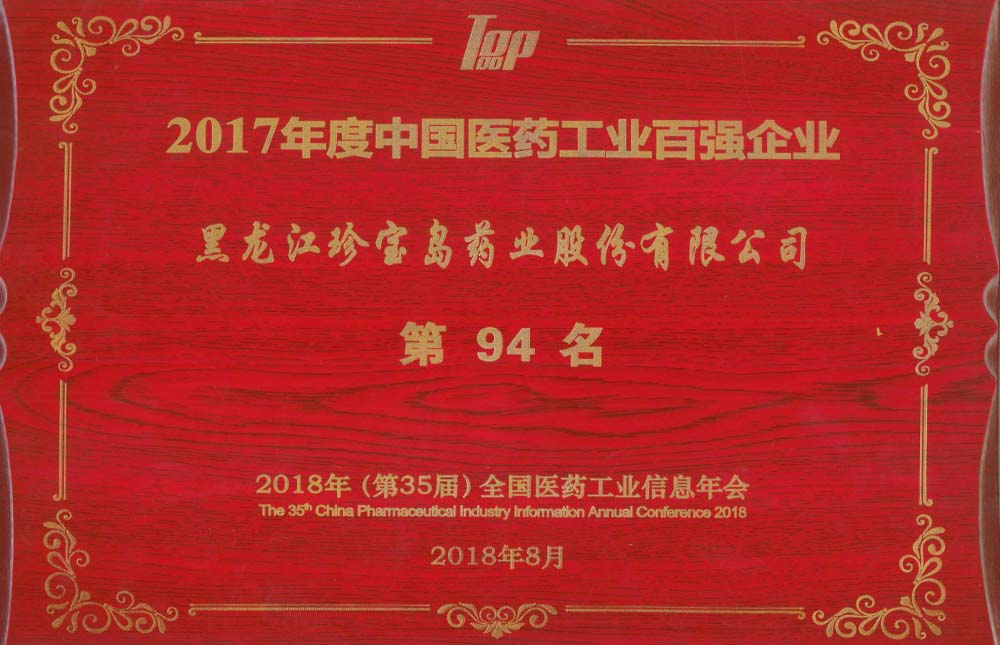 黑龍江珍寶島藥業(yè)股份有限公司成立。企業(yè)躋身中國(guó)醫(yī)藥工業(yè)第15強(qiáng)。