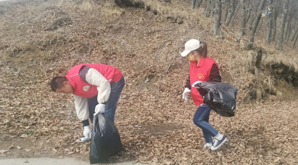 大家自備手套、水靴、剪刀、袋子、皮繩等清掃工具,從石青山的山腳下開始,對(duì)環(huán)山路兩側(cè)的垃圾進(jìn)行全面清理、裝運(yùn)。有的鉆入樹林,撿拾白色垃圾;有的摘除破損條幅,更換新貌;有的收堆、撐袋,將垃圾裝車運(yùn)走。醒目的條幅標(biāo)語(yǔ),飄揚(yáng)的志愿服務(wù)隊(duì)隊(duì)旗,鮮紅的志愿者身影,忙碌的勞動(dòng)場(chǎng)面,構(gòu)成了一幅五彩斑斕的畫卷。
